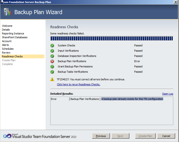 Após a migração do Team Foudation Server 2010 de servidor, fui realizar a configuração dos backups através do TFS Powertools (disponibilizado pela Microsoft no link: http://visualstudiogallery.msdn.microsoft.com/c255a1e4-04ba-4f68-8f4e-cd473d6b971f) e me deparei com o seguinte erro: