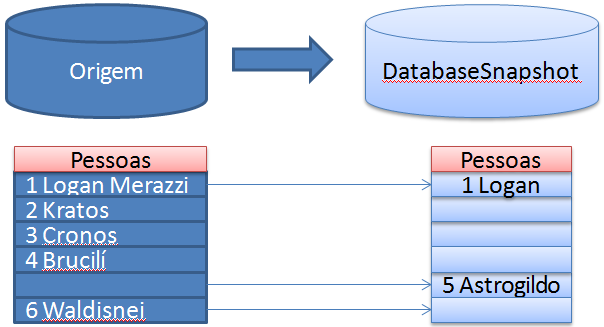 A minha ideia incial era tentar mostrar dentro das páginas de dados quando estaríamos acessando o banco original (consultando o snapshot) e quando estaríamos vendo os dados alterados e enviados para o snapshot, porém em conversa com o grande Luciano Moreira (twitter | blog), ele me falou que isso não era possível (após um papo com o Paul Randal… Loucura esse mundo, ehehe), que cada página fica em um mapa de bits na memória e que para buscar isso apenas usando um debugger no SQL Server… Aí já viu né… Ficamos assim, hehehehe