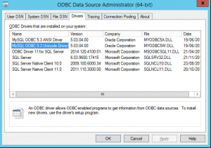 Após a instalação, entre no ODBC Data Source Administrator e entre na aba Drivers. Deverá aparecer o driver do MySQL instalado, conforme imagem:
