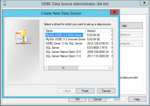Na janela que aparecerá, clique no driver MySQL ODBC 5.3 ANSI (ou Unicode) Driver – A versão 5.3 é a mais recente disponível até o dia 16/11/2015.