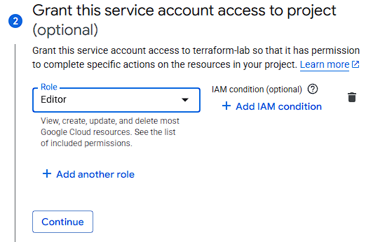 - **Editor** (ou, para algo mais seguro: Compute Admin, Storage Admin, etc.)